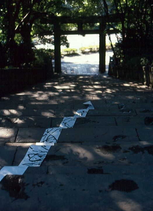 |  | | 28 sections assembled as a ribbon ascending steps into shinto temple in japan |