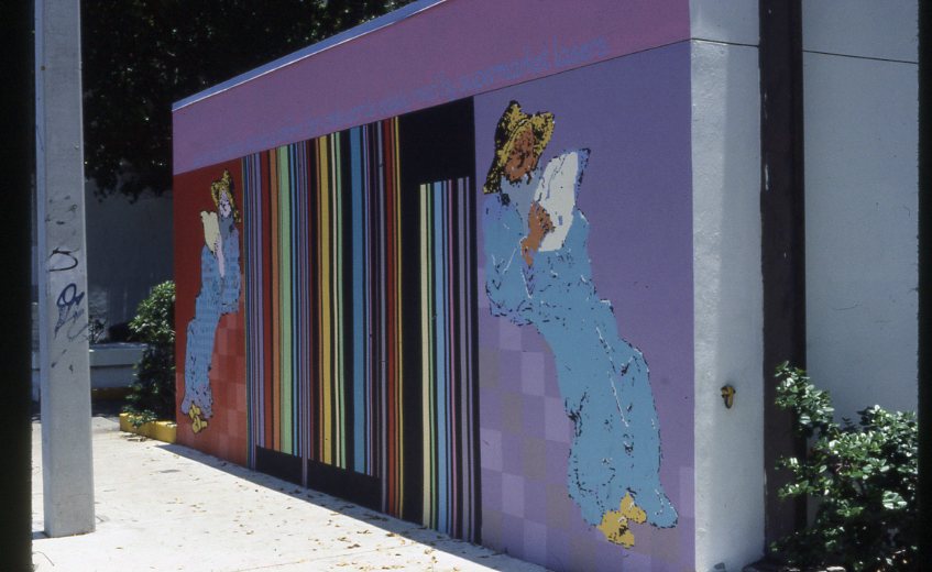 mural of artnews barcode and digitized rembrandt drawing painted on a miami wall