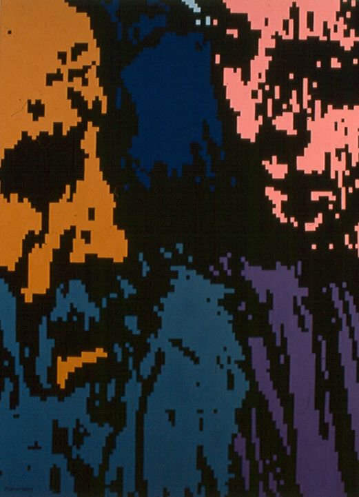 pixilated angel stopping abraham. acrylic on canvas. 184x133 cm.