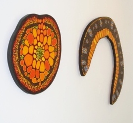 |  | | encaustic paint on photomicrograph mounted on three shaped panels |